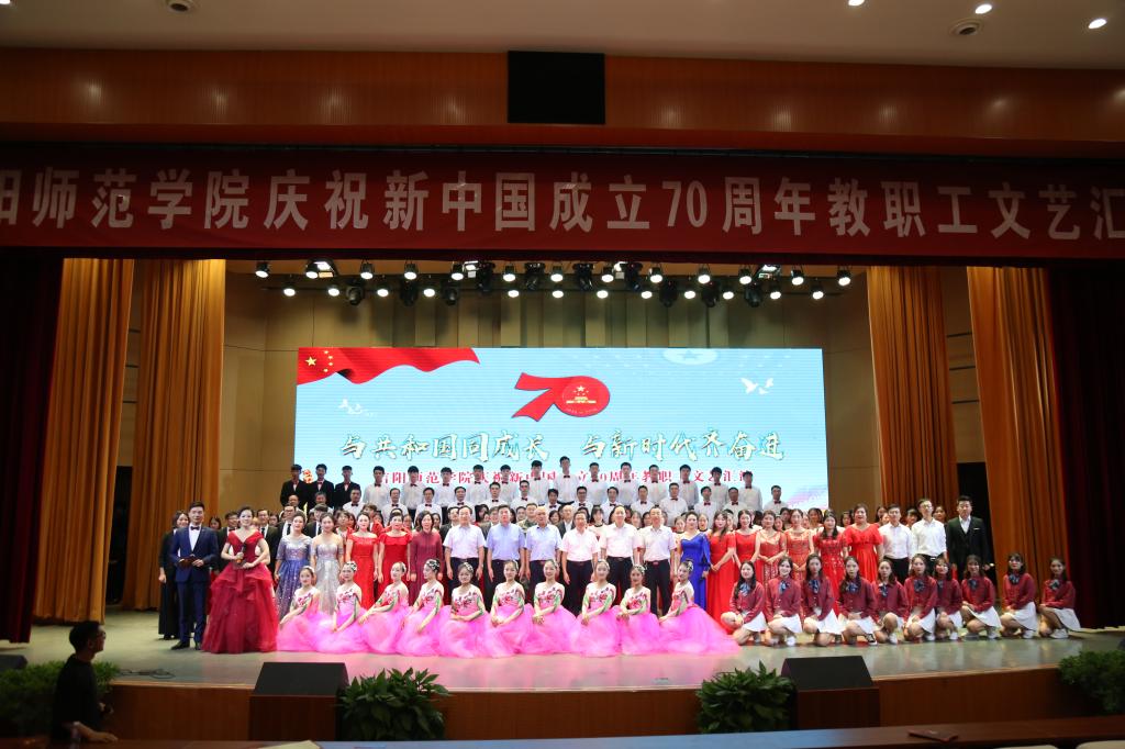 在新中国成立七十周年来临之际,2019年9月29日晚,公司“与共和国同成长,与新时代齐奋进”庆祝新中国成立七十周年教职工文艺汇演在艺术楼音乐厅盛大举行。公司8名青年教师代表沈艳霞,陈璐,李斐然,赵红娇,竹梅,许孟杨,张传伟,吴浩参加此次教职工文艺汇演。