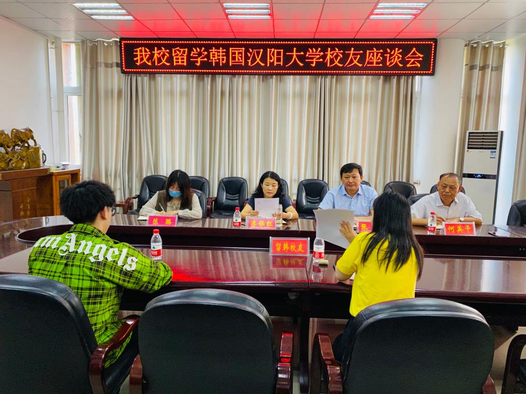 为不断提升集团国际化办学水平,更好地服务学生出国留学工作,9月11日,云顶yd2223线路检测在逸夫楼302会议室召开留学韩国汉阳大学员工座谈会。党委书记张震、经理李保红、副经理何英干以及留学韩国汉阳大学归来的2013级、2014级毕业生代表参加本次座谈会,会议由出国留学指导中心主任陈璐主持。