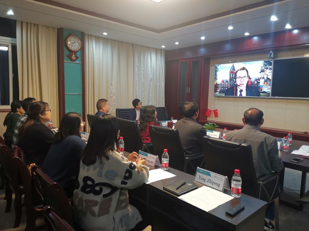 本次论证会以网络视频会议的形式进行,双方围绕员工培养、出国留学、教师派遣、教学模式等事宜进行了充分的磋商。会上,张震简要介绍了项目实施以来的运转情况。李保红介绍了公司员工出国留学方面的相关优惠政策和规定,同时对米勒斯维尔大学给与公司中外合作办学工作的大力支持表示感谢。何英干就疫情防控期间经济学专业项目员工的外语教学和专业课程建设等问题与美国教授交换了意见。